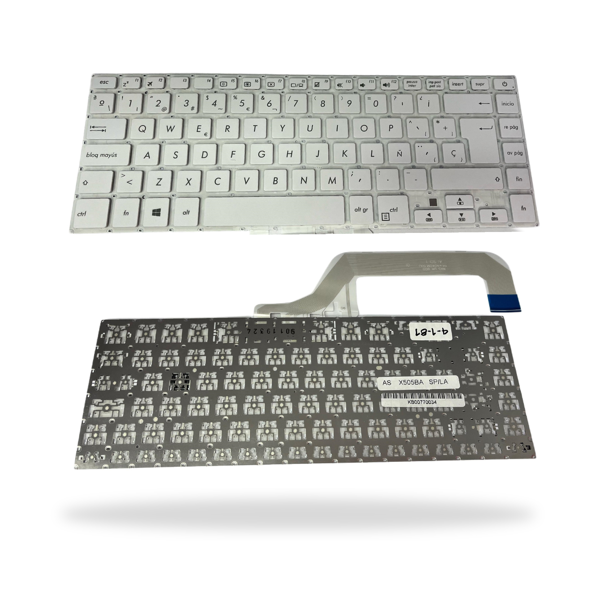 Teclado portátil Asus X505BA K505B SP White. Homologado en color blanco.