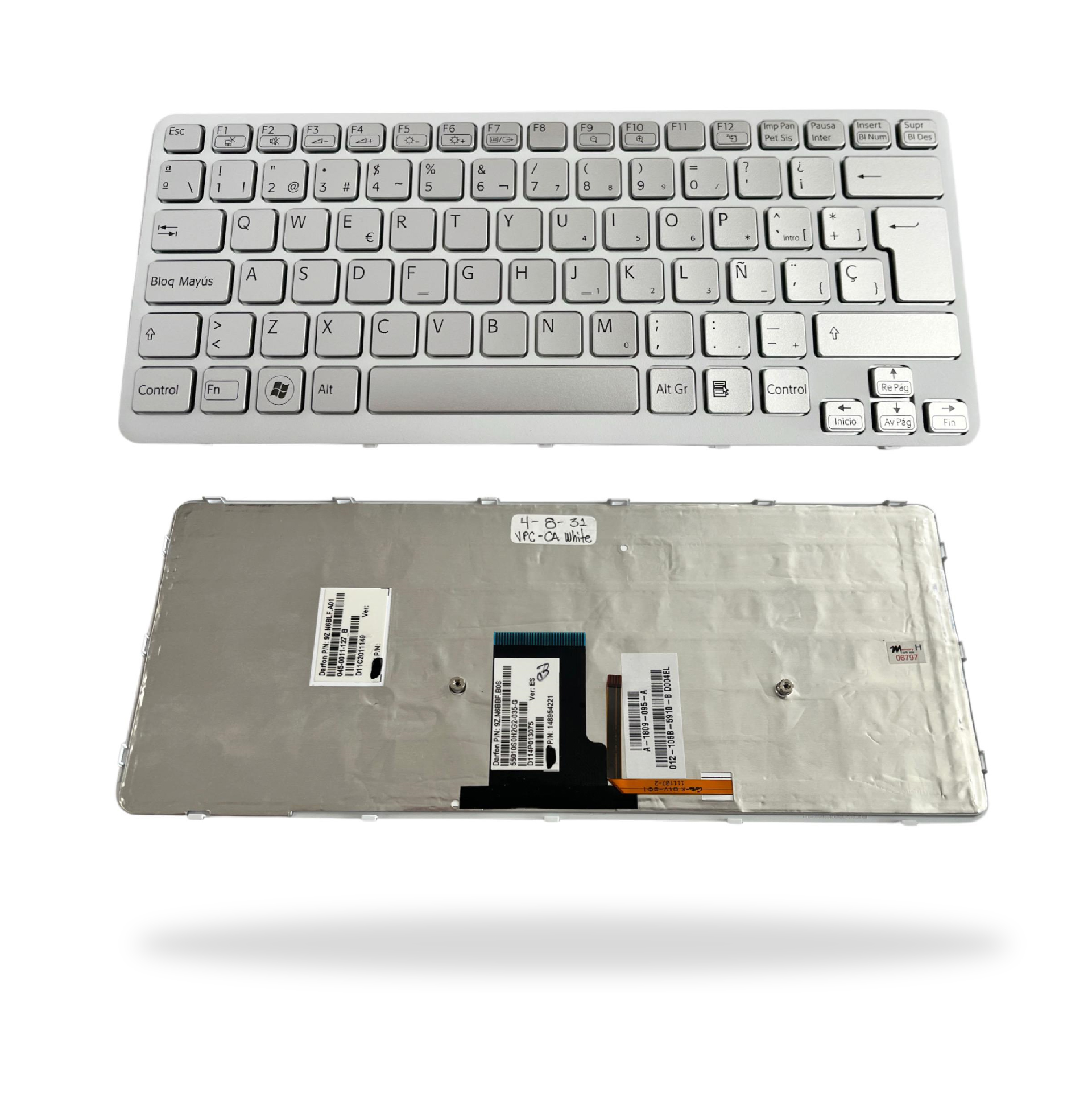 Teclado portátil Sony Vaio VPC-CA White. Producto homologado en blanco. COMPATIBLE CON: VPC-CA VPCCA VPCCA36 VPCCA38